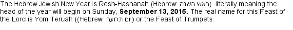 ROSH-HASHANAH JEWISH NEW YEAR 5775 began on September 24th, Hebrew month Elul A Period of the High Holiday Days of the New Year Anniversary of His creation leading to the "Day of Judgment" known as Yom Kippur.